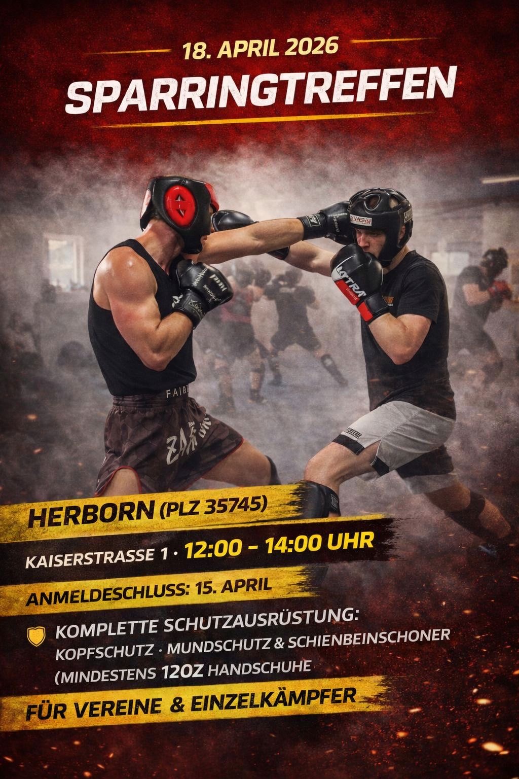 Erlebe echtes Sparring auf allen Levels – technisches Wachstum, Community & harte Runden aus erster Hand. 📅 18.04.2026 🕛 12:00 – 14:00 Uhr 📍 Kaiserstraße 1, Herborn (35745) 👊 Für Vereine & Einzelkämpfer geeignet ⚠️ Anmeldeschluss: 15. April – sei schnell! ✅ Komplette Schutzausrüstung ist Pflicht 🔞 Teilnahme ab 16 Jahren Nach dem Sparring: gemeinsam […]
